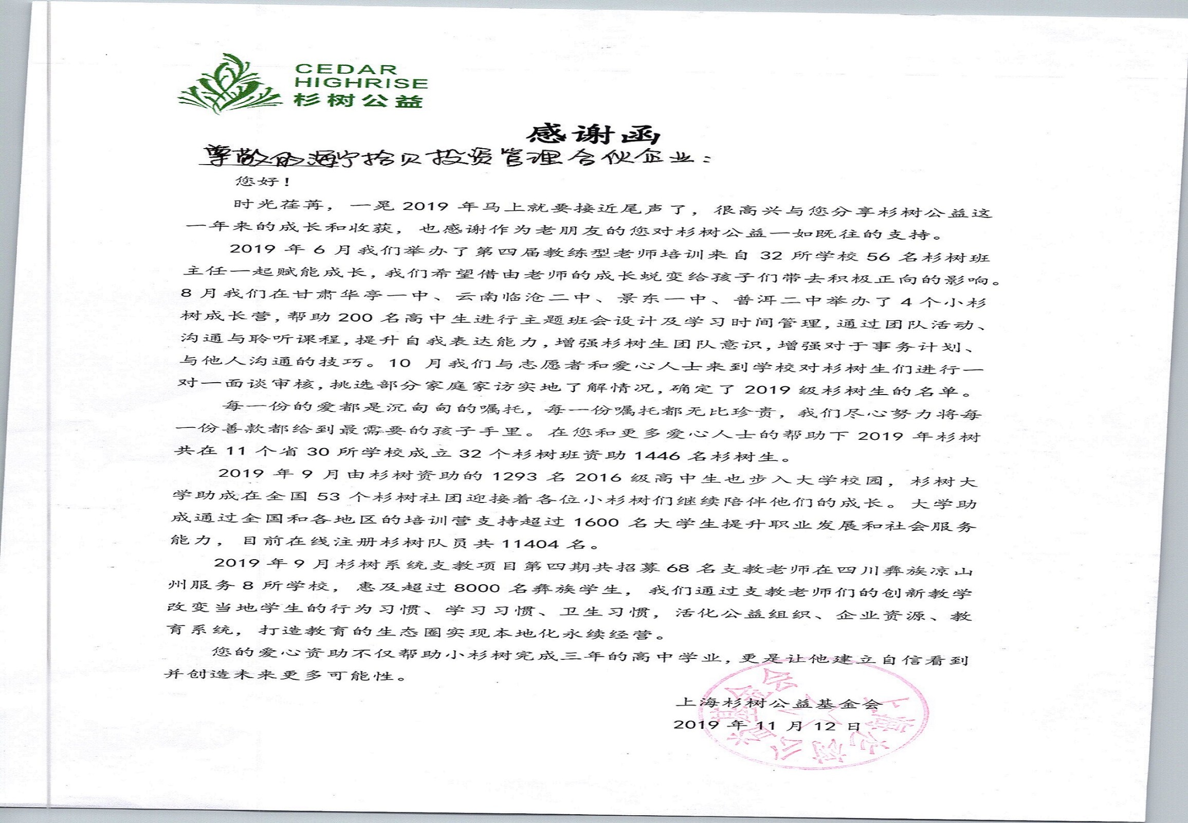 杉树公(gōng)益 | 2019级拾贝投(tou)資(zi)杉树班49位小(xiǎo)杉树成(cheng)功考取理(li)想大(da)學(xué)